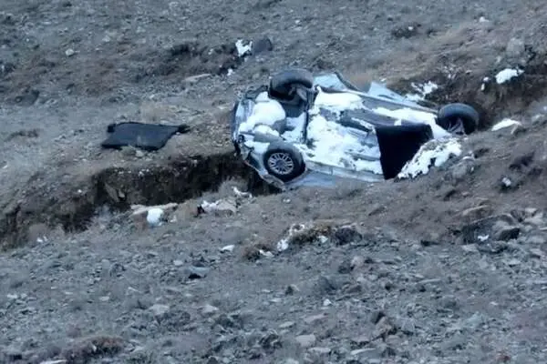 لحظه سقوط خودروی دنا به درهای در جاده چالوس/ ۳ نفر جان باختند