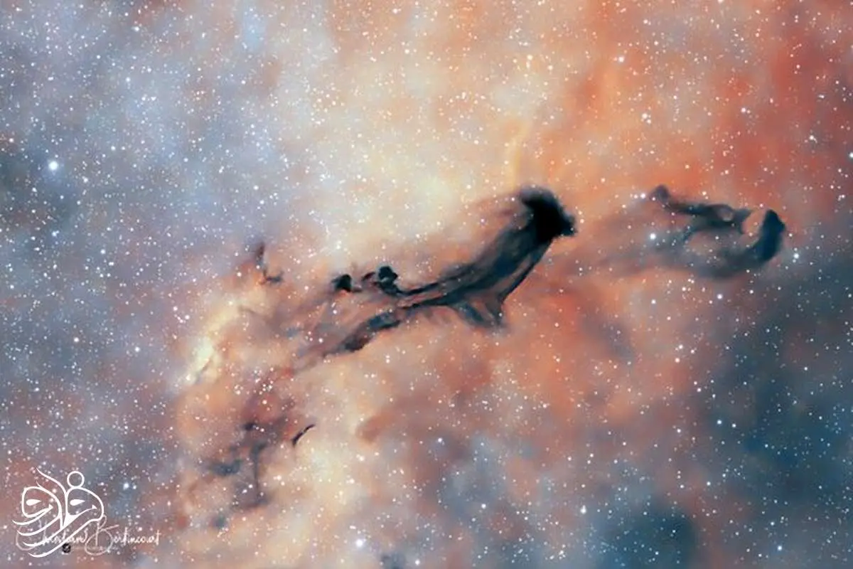 به گزارش ایسنا، کریستین برتینکورت، عکاس نجومی که این تصویر خیرهکننده از بارنارد ۹۳ (B93) را ثبت کرده است، آن را «یک روح در کهکشان راه شیری» توصیف میکند. نود و سومین ورودی در کاتالوگ سحابیهای تاریک بارنارد، B93 است که در ابر ستارهای کوچک قوس (مسیه ۲۴) قرار دارد، جایی که تاریکی آن در تضاد کامل با ستارگان درخشان و گاز در پسزمینه است.