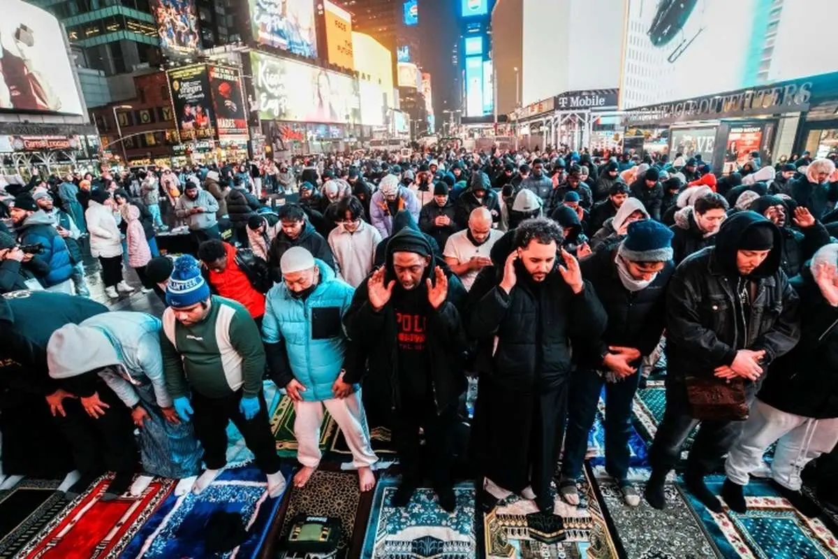 میدان تایمز نیویورک میزبان صدها مسلمان بود که در قالب یک برنامه سالانه، آیین افطار و نماز تراویح را در قلب یکی از شلوغترین نقاط جهان برگزار کردند.